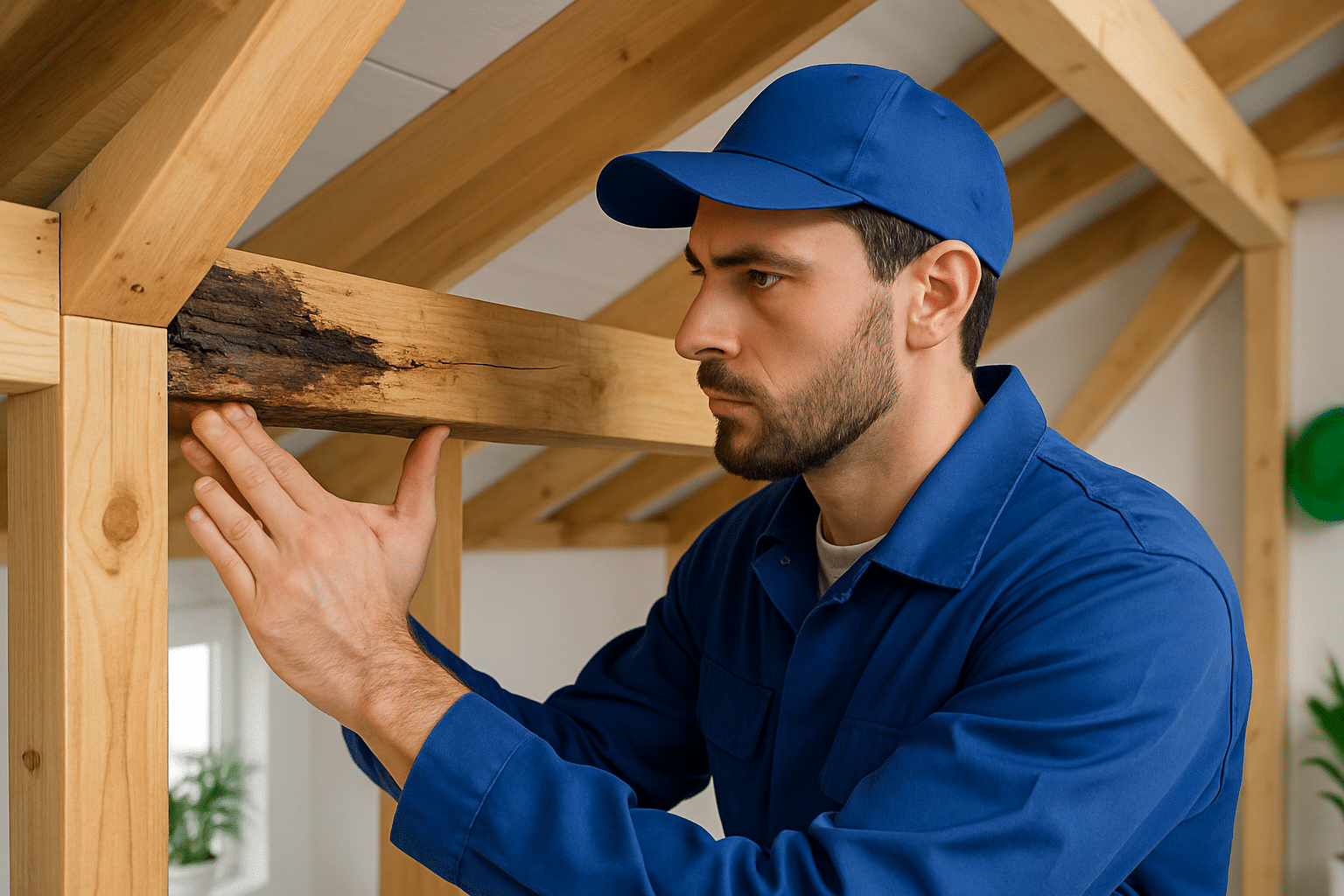 - ✅ Passez en revue chaque élément porteur (poutres, pannes, chevrons, solives) en les sondant et en les percutant pour repérer les zones fragilisées.