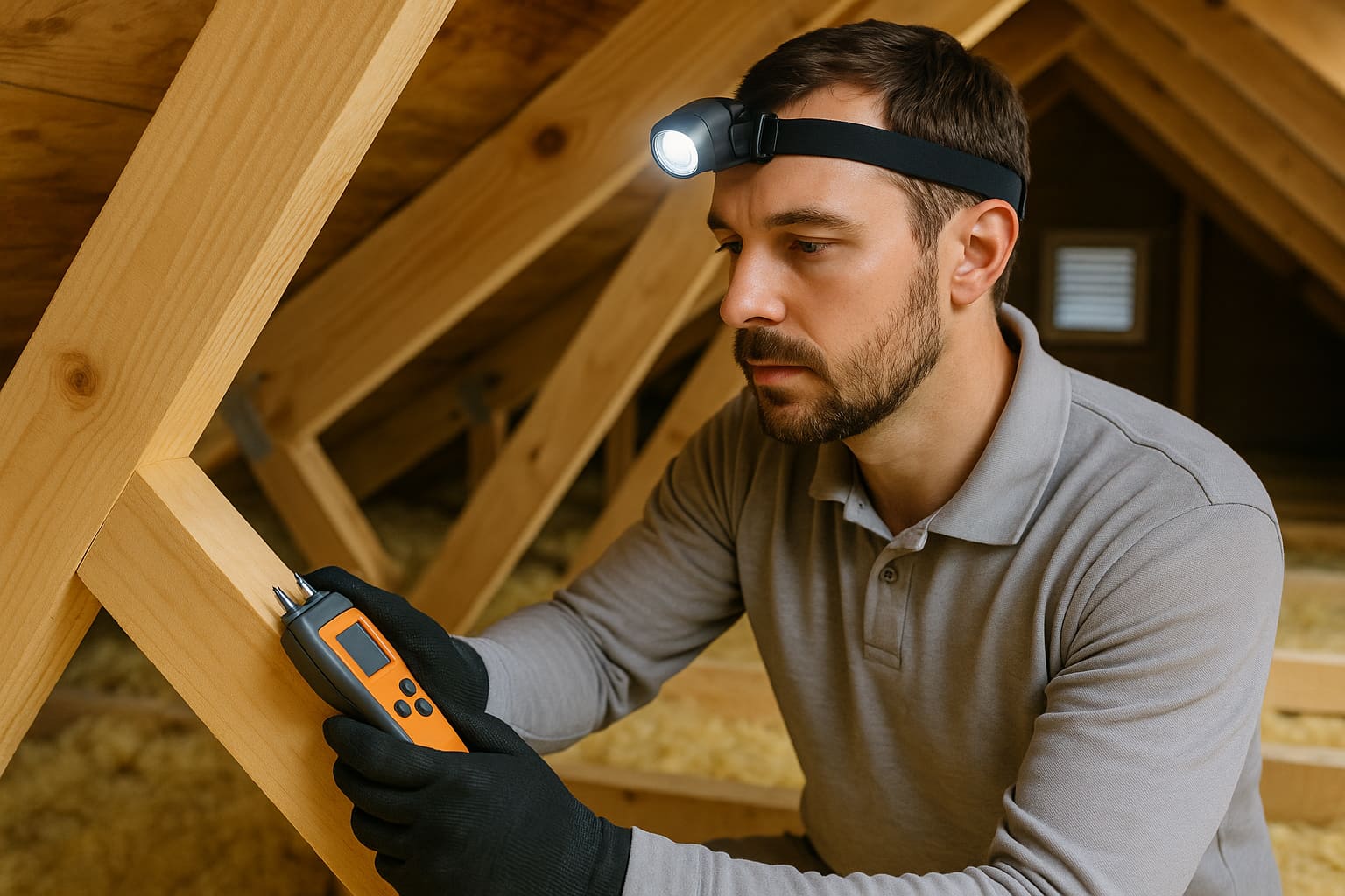 Dans les bois : solives, poutres, plinthes, planchers, encadrements de fenêtres sont sondés à l’aide d’un hygromètre bois. Au‑delà d’environ 20 % d’humidité, le risque de développement de mérule devient important. Des valeurs supérieures (30 % et plus) associées à un local sombre et peu ventilé constituent un signal d’alerte majeur.