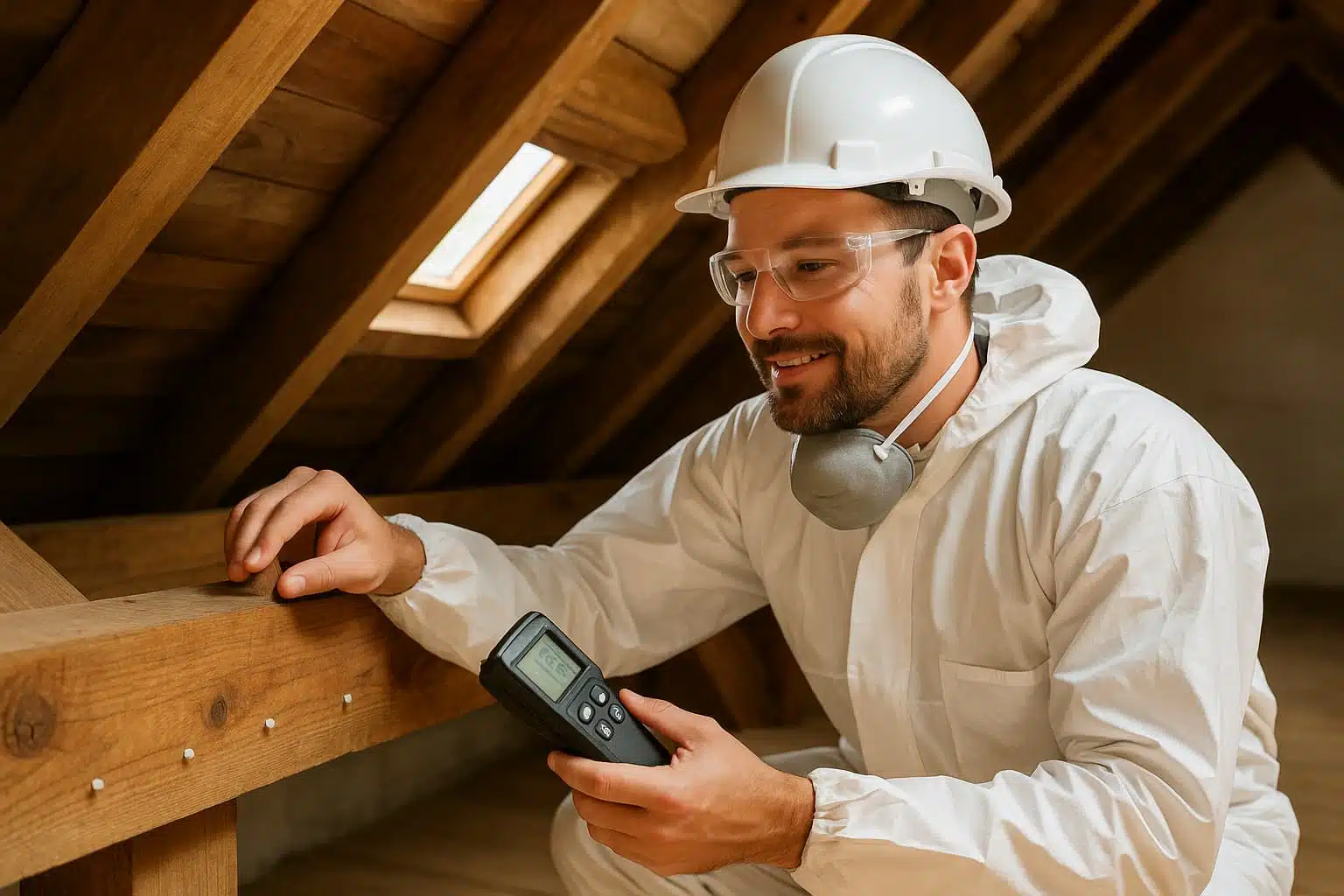 • Humidité du bois comprise entre 22 et 40 % : infiltrations, remontées capillaires, sous-sols humides, fuites de toiture ou de plomberie, condensation non maîtrisée créent le point de départ de l’infestation.