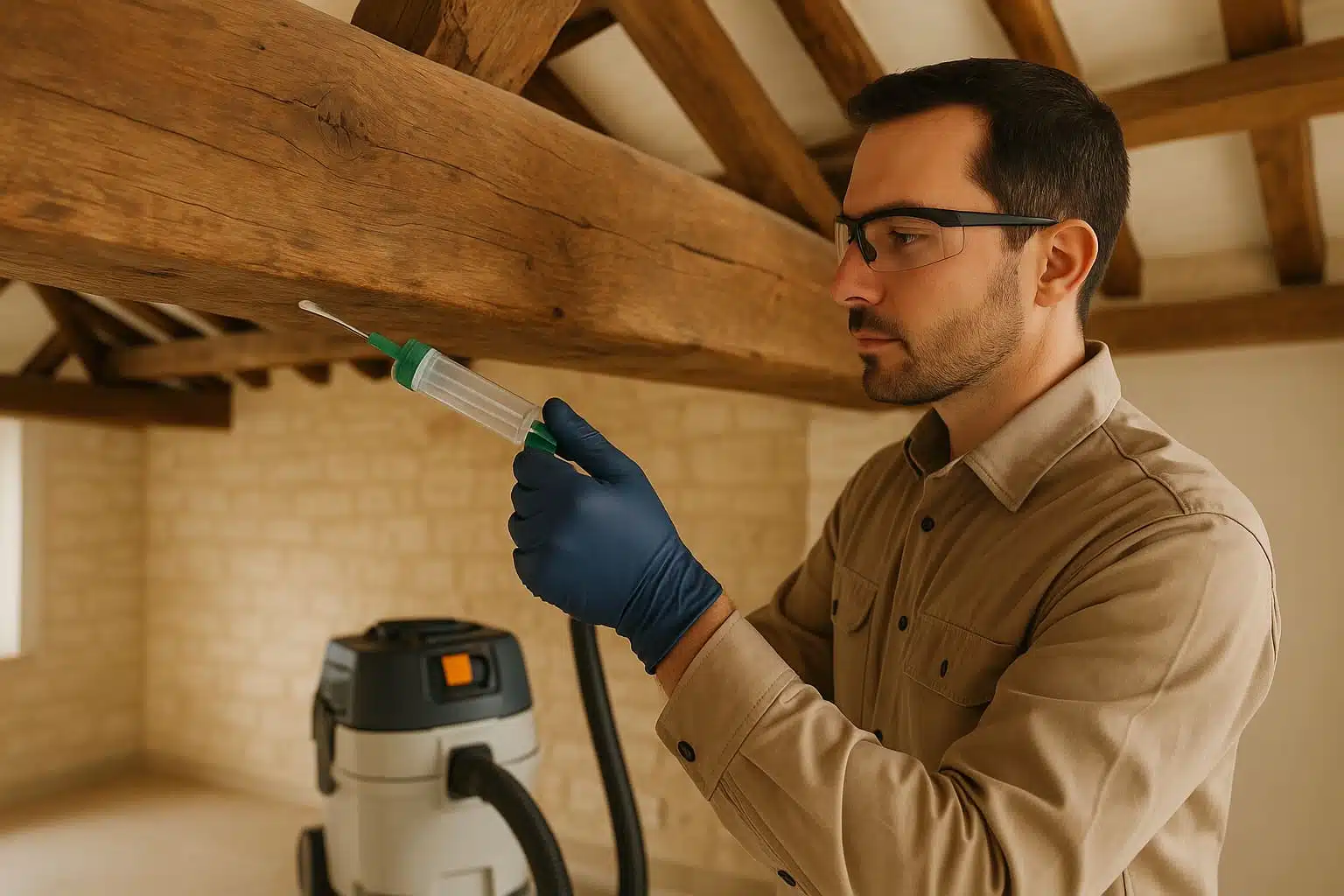 Cette méthode est privilégiée pour les infestations localisées ou modérées, lorsque les éléments structurels restent mécaniquement acceptables. Par exemple, dans une cave de 20 m² où seules quelques solives présentent un début d’attaque, l’injection couplée à une pulvérisation de surface permet souvent d’éviter un démontage lourd, à condition de traiter en parallèle l’humidité.